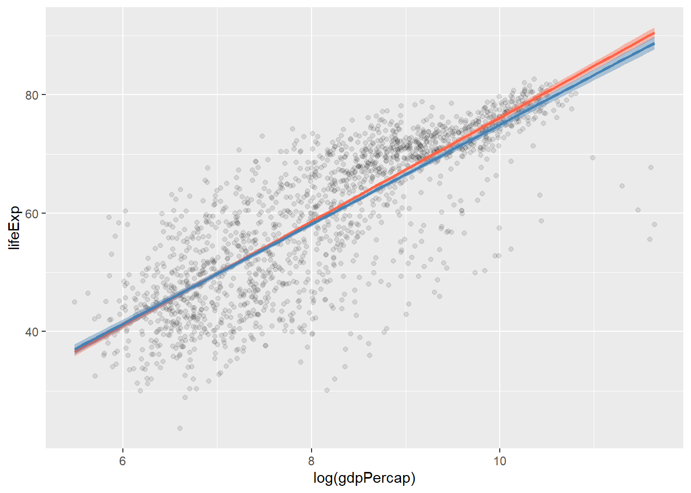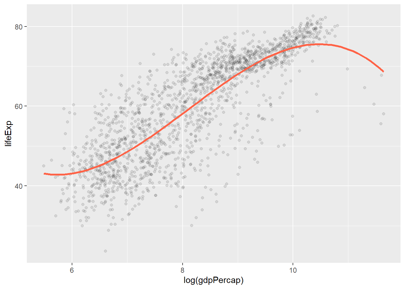 mapping = aes(x = log(gdpPercap), y = lifeExp))
