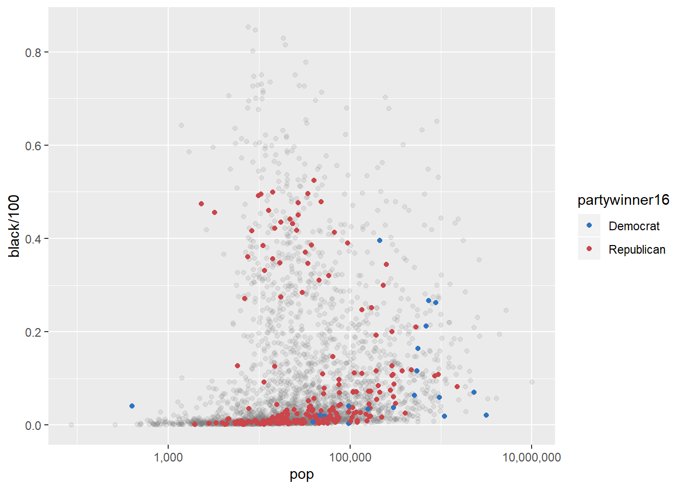mapping = aes(x = pop, y = black / 100, color = partywinner16)