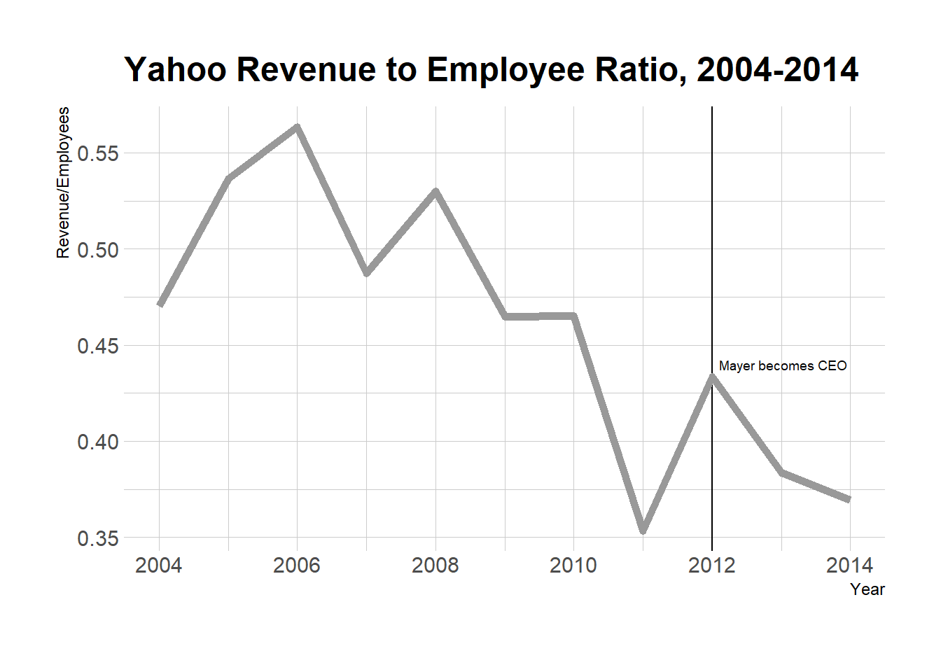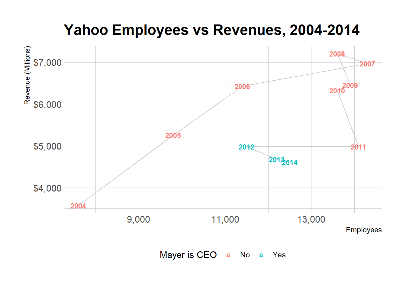 title = "Yahoo Employees vs Revenues, 2004-2014"