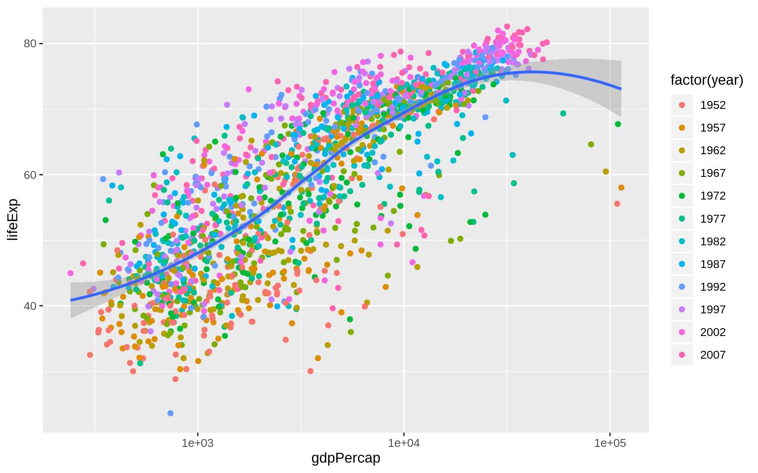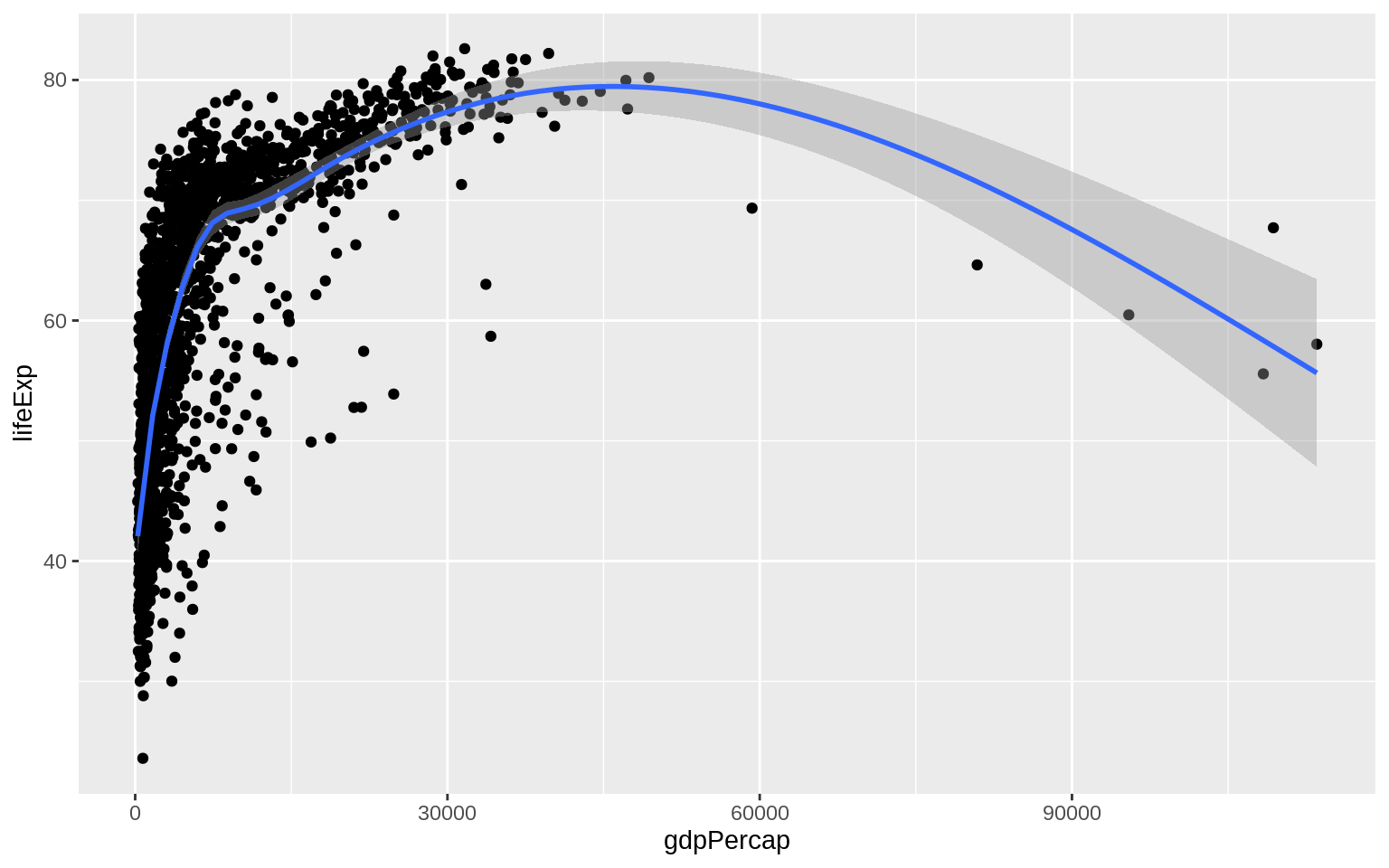 mapping = aes(x = gdpPercap, y = lifeExp))