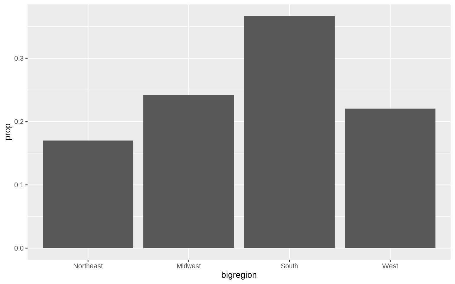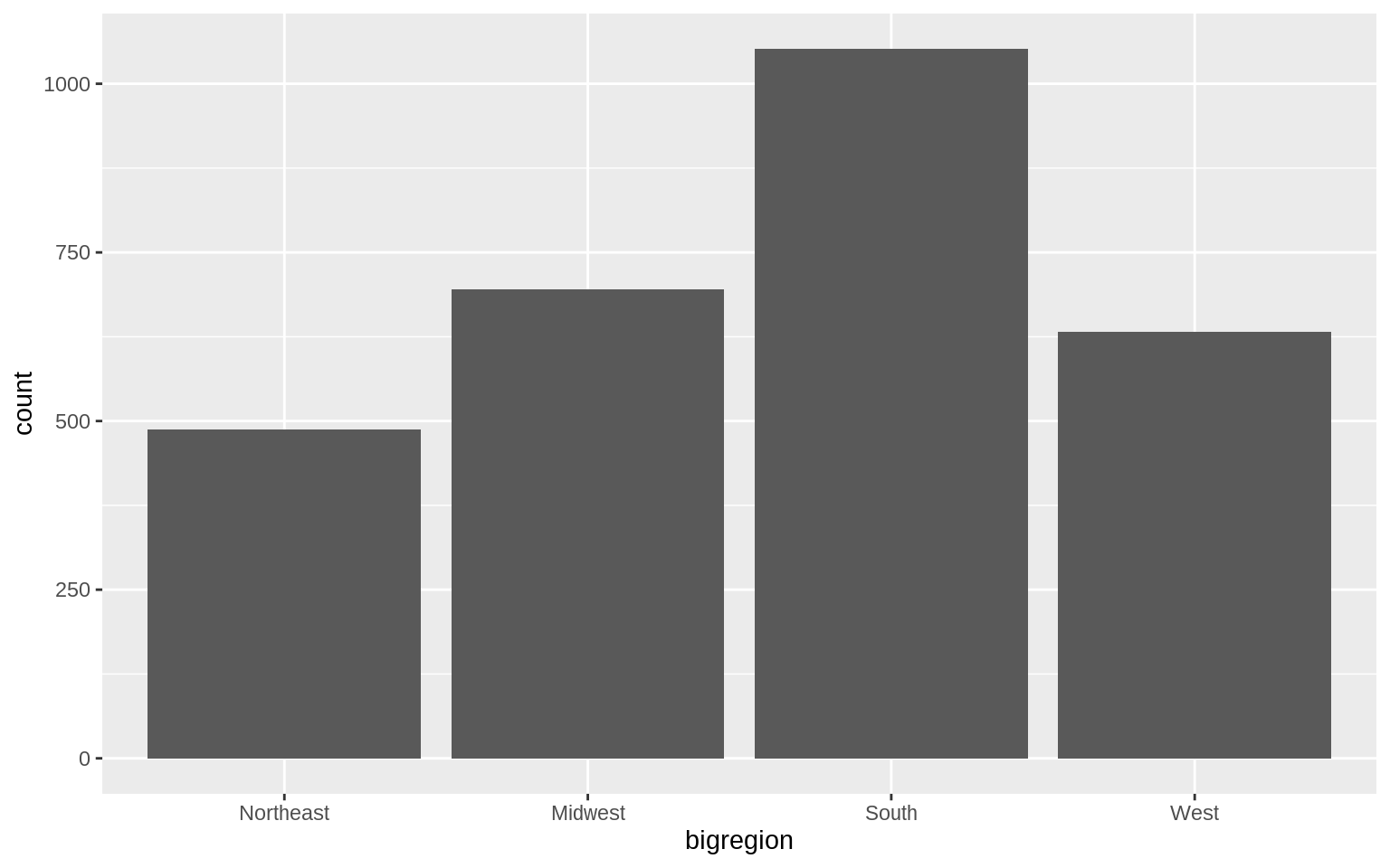 p <- ggplot(data = gss_sm, mapping = aes(x = bigregion))