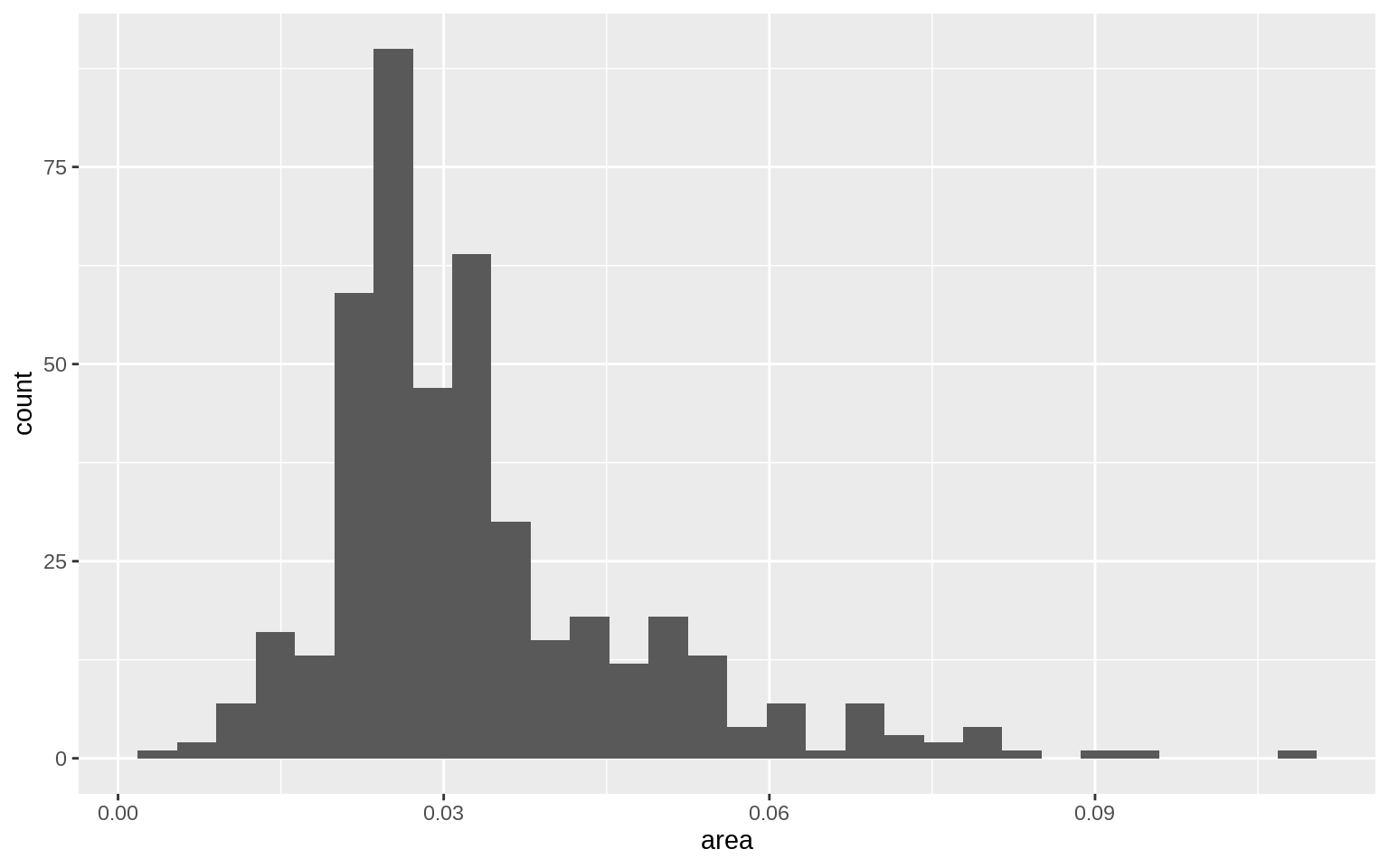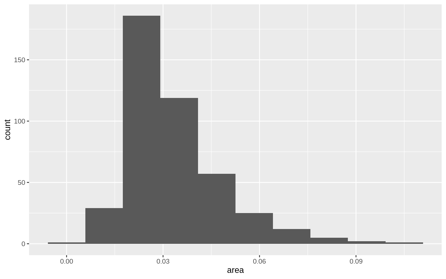 p <- ggplot(data = midwest, mapping = aes( x = area))